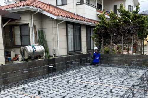 基礎工事中には 鉄筋の配筋検査を受け