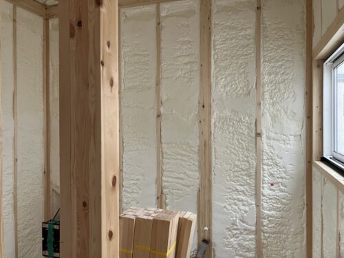 家の中の空気を吸いだして室内の隙間を見つけていき、ウレタンスプレー等で埋めていきます。